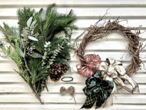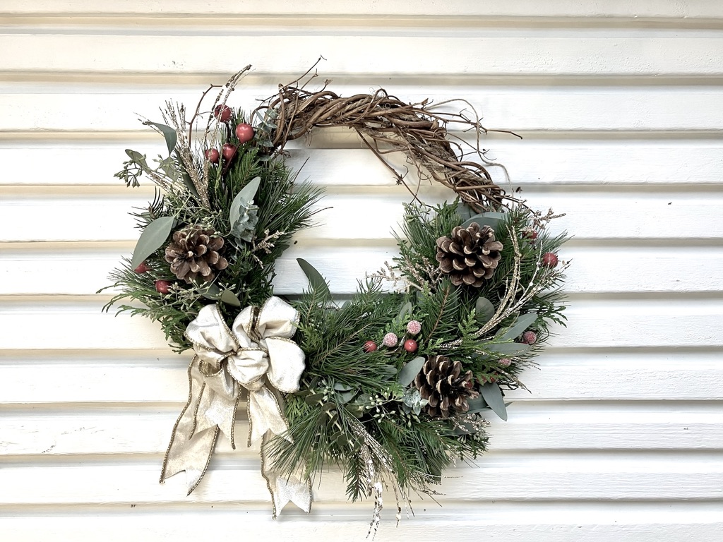 Notre ensemble DIY pour créer une couronne de Noël naturelle est disponible en boutique ou en livraison en deux grandeurs (12 et 15 pouces).