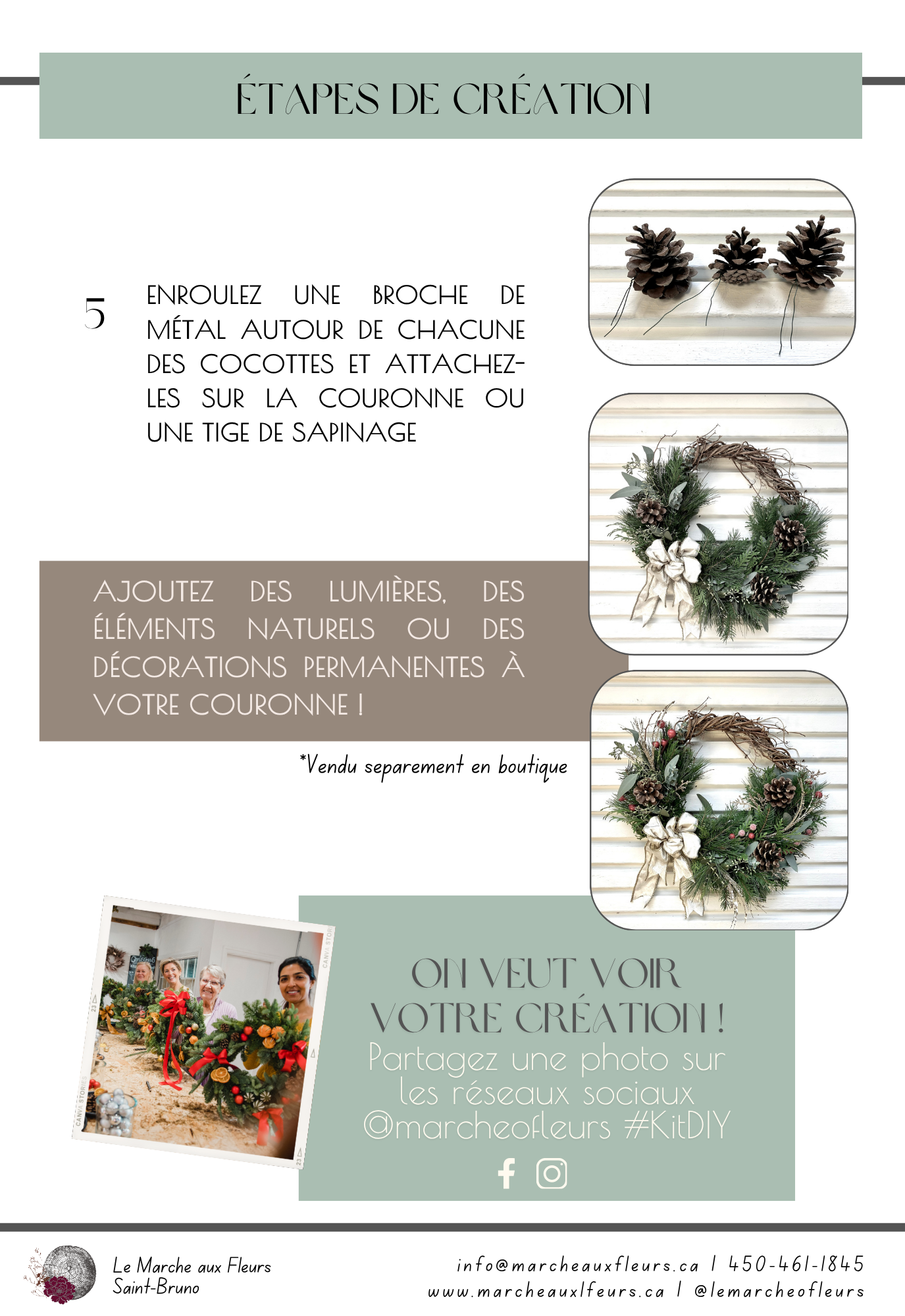 Notre ensemble DIY pour créer une couronne de Noël naturelle est disponible en boutique ou en livraison en deux grandeurs (12 et 15 pouces).