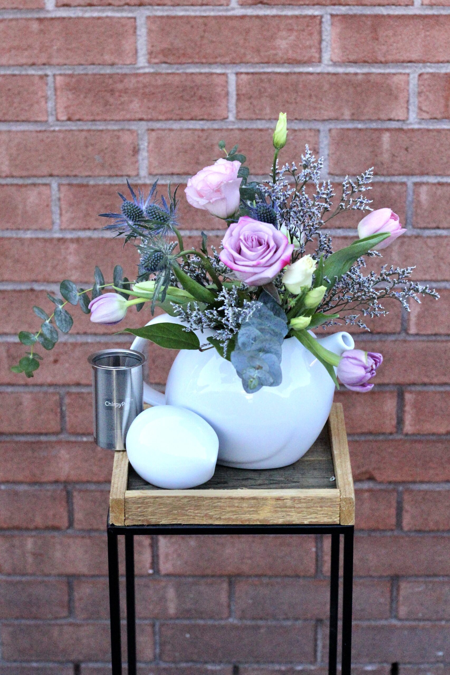 Ajoutez à l’expérience unique de la théière ChirpyPot en l’offrant avec un bouquet de fleurs fraîches!