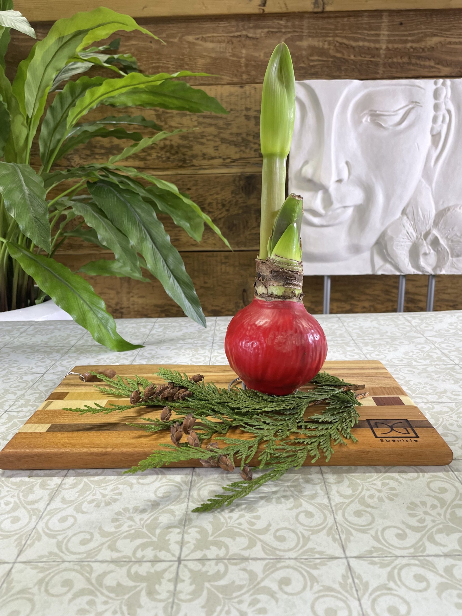 *Un bulbe d’amaryllis dans une coquille de cire sans entretien d’une valeur de 24$;